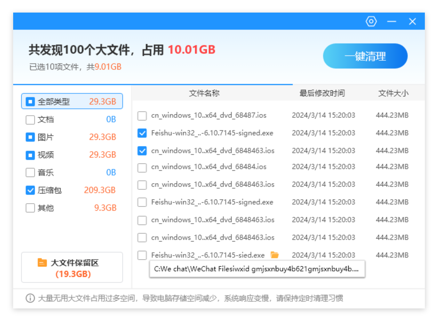 马上扫描查看所有大文件信息,清理后立即释放存储空间!